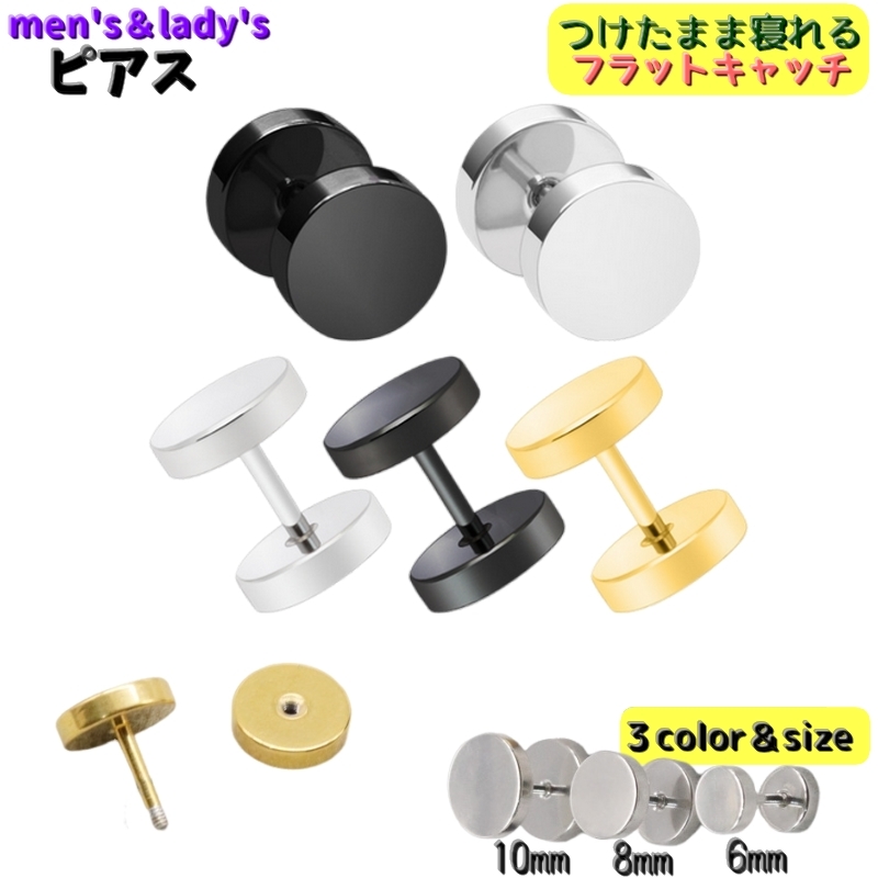 ピアス スタッドピアス 単品 片耳用 ダンベルピアス メンズ レディース ユニセックス 男性 女性 アクセサリー 平面 つけっぱなし 寝れる バックフ