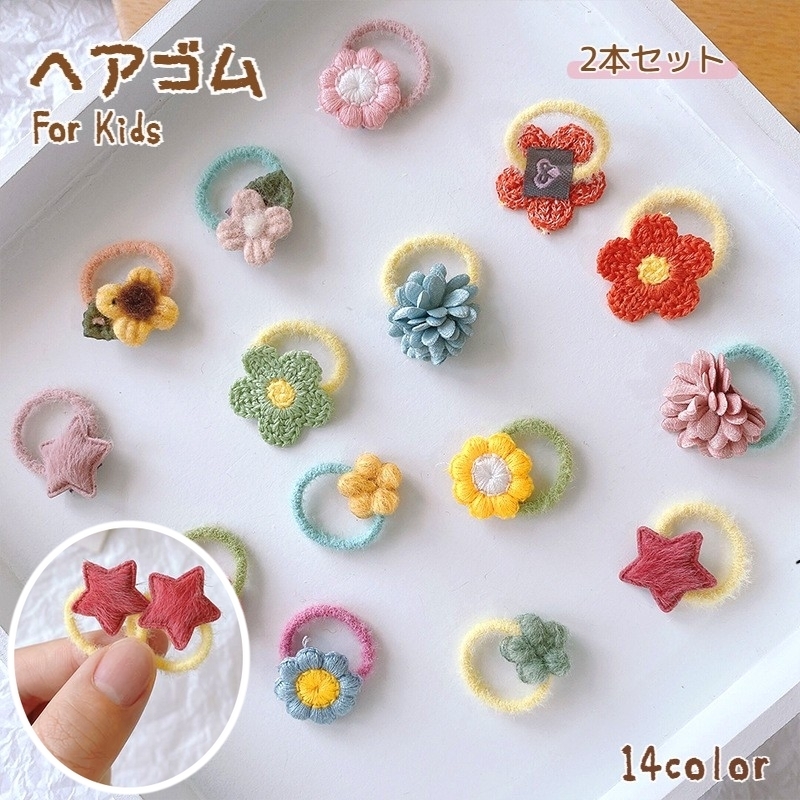 ヘアゴム ミニサイズ 2本セット 2個 キッズ 女の子 ベビー 赤ちゃん ヘアアクセサリー 子供 お花 フラワー やらわか 髪留め ヘアアレンジ 髪飾