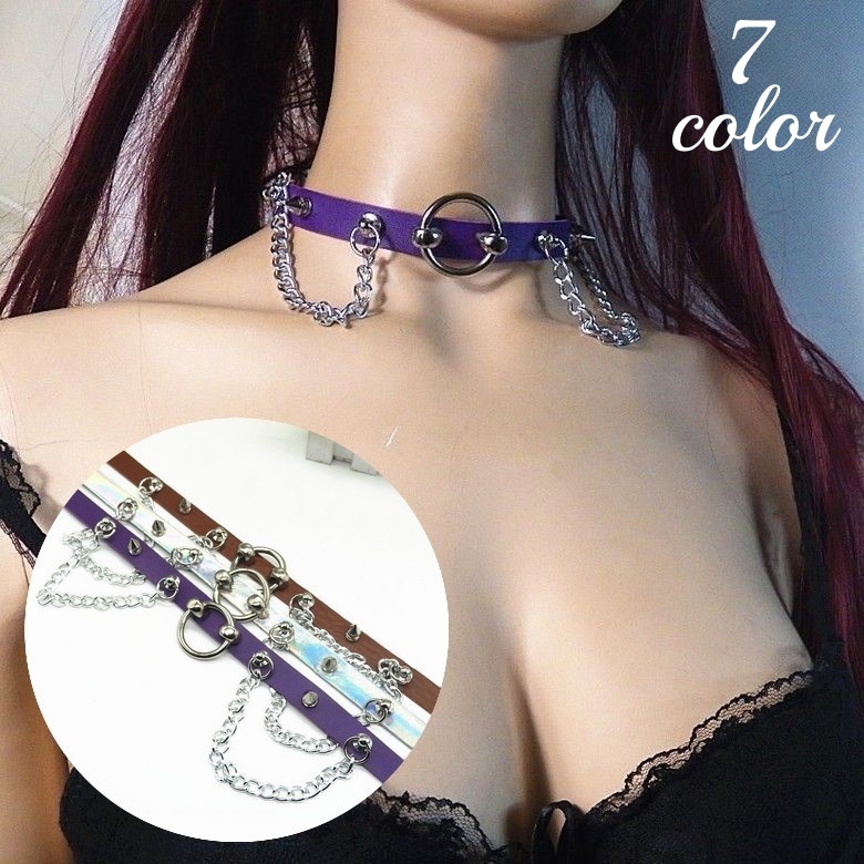 レザーチョーカー ネックレス レディース アクセサリー チェーン スタッズ リング パンク ロック ゴシック V系 コスプレ衣装 コスチューム 首輪