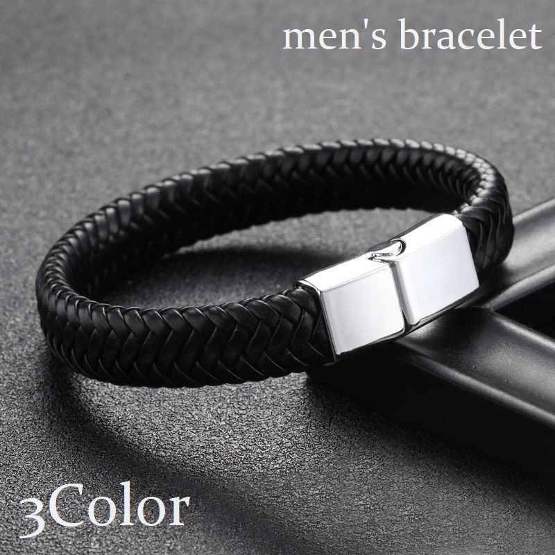 ブレスレット バングル メンズ アクセサリー 編み込み 縄 ロープ レザー調 マグネット 磁気バックル シンプル おしゃれ プレゼント ギフト 普段使