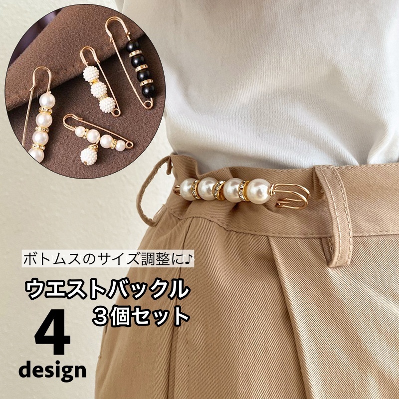 ウエストバックル ズボンピン 3個セット サイズ調整 裁縫材料 パール調 ラインストーン アジャスター デニム ジーンズ パンツ ズボン お直し DI