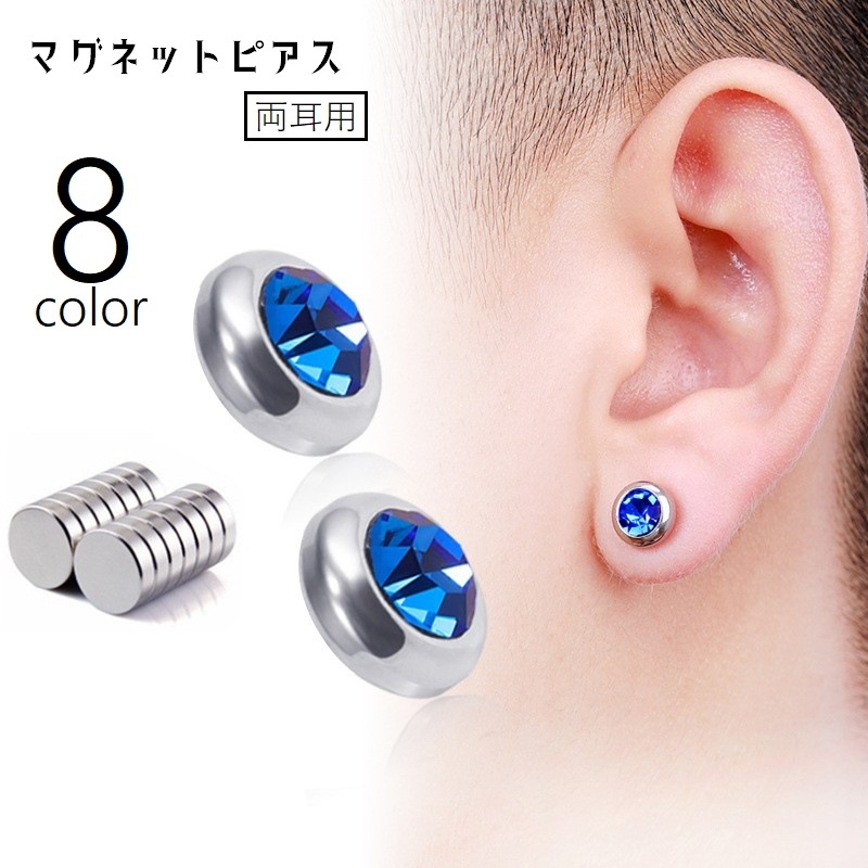 マグネットピアス マグネットイヤリング ノンホール 両耳用 穴あけ不要 メンズ レディース 男女兼用 アクセサリー 耳飾り ステンレス ラインストーン