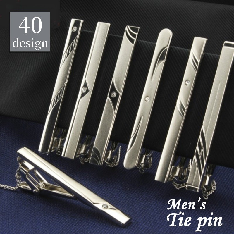 ネクタイピン タイクリップ タイバー メンズ 男性用 落下防止チェーン付き おしゃれ お洒落 フォーマル ビジネス ワニ口式 シンプル ギフト プレゼ