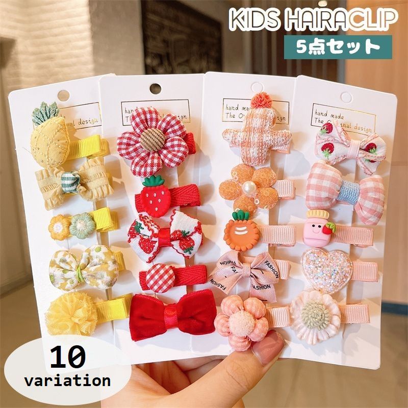ヘアクリップ 5点セット キッズ 子供用 女の子 ヘアアクセサリー 髪留め 髪飾り ヘアアレンジ フラワー イチゴ リボン 可愛い おしゃれ お出掛け