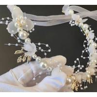 可憐なパール調ビーズやお花デザインの花冠です。