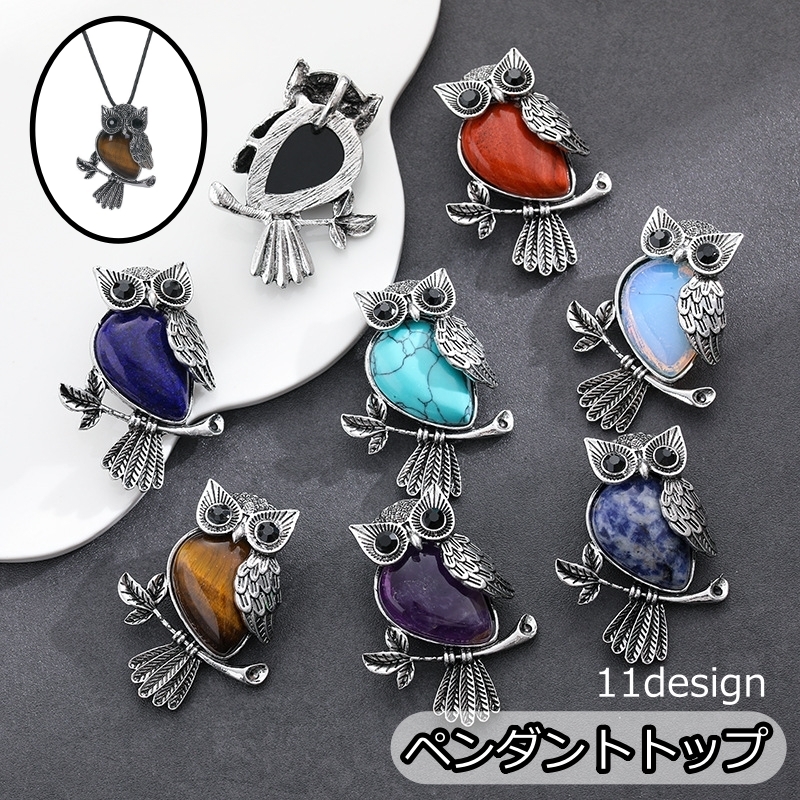 ペンダントトップ ペンダントヘッド チャーム ネックレス ペンダント 天然石 パワーストーン 梟 不苦労 縁起物 ラッキーアイテム レディース 女性