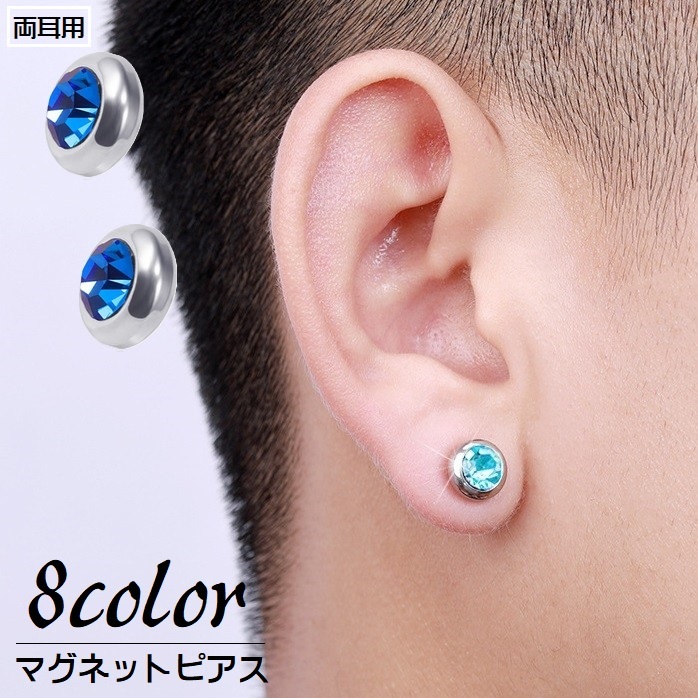 マグネットピアス マグネットイヤリング ノンホール 両耳用 穴あけ不要 メンズ レディース 男女兼用 アクセサリー 耳飾り ステンレス ラインストーン