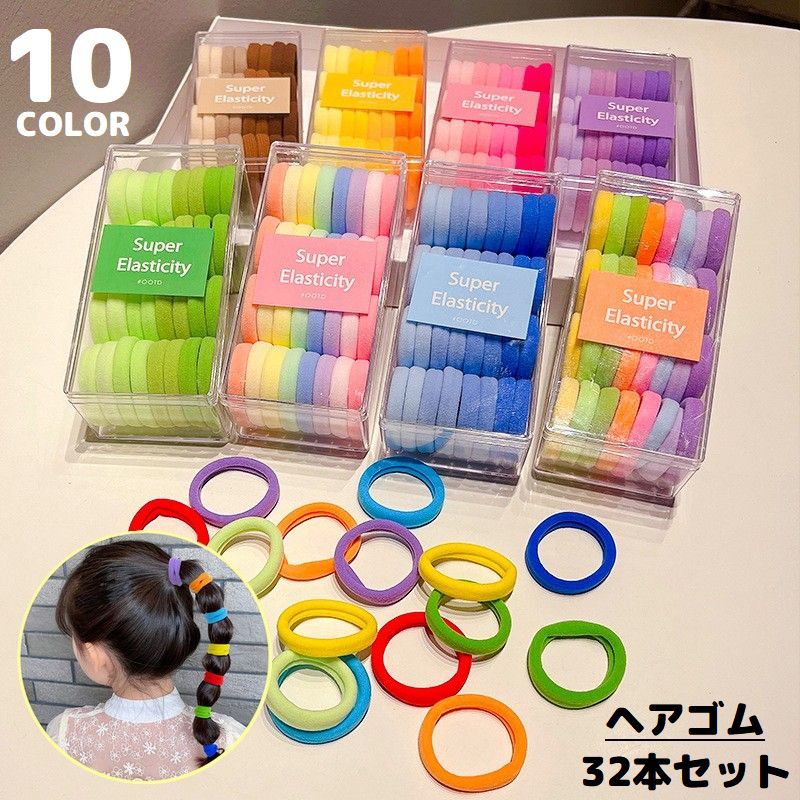 ヘアゴム リングゴム パイルゴム 32本セット 子供 キッズ ヘアアクセサリー 髪留め まとめ髪 ポニーテール 収納ケース付き
