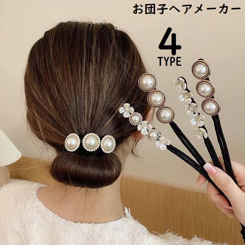 お団子メーカー シニヨンワイヤー レディース ヘアアクセサリー 髪飾り 花 フラワー パール風 くるくる巻くだけ 簡単 かわいい