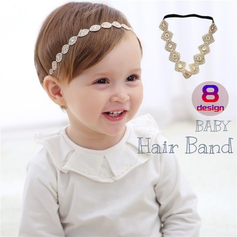ヘアバンド ヘアアクセサリー ベビー 赤ちゃん 新生児 ヘッドバンド 髪飾り レース ライン フェイクパール キラキラ 細め かわいい おしゃれ 誕生
