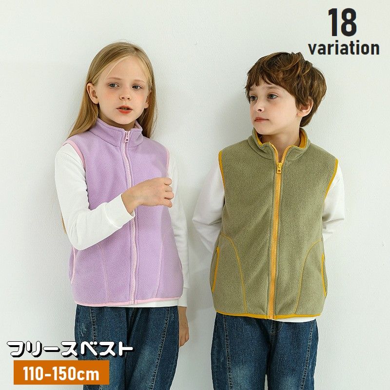 ベスト フリース ボア キッズ ジュニア 子供服 女の子 男の子 ジップアップ アウター 立襟 ハイネック ポケット付き 前開き バイカラー あったか