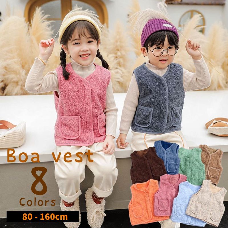 ボアベスト 子供用 ボアフリース ベスト 前開き キッズ ベビー モコモコ 起毛 秋冬 防寒 女の子 男の子 Vネック ノースリーブ ライナー 無地