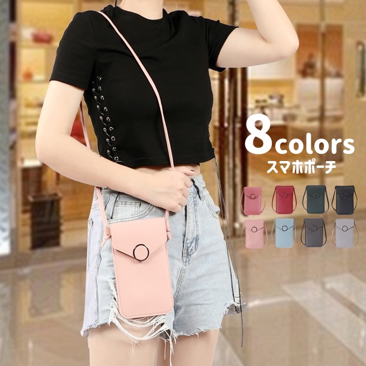 ショルダーバッグ スマホポーチ ポシェット 入れたまま操作 レディース 女性 ミニバッグ 薄型 縦長 縦型 学生 大人 お散歩 スマートフォンポーチ