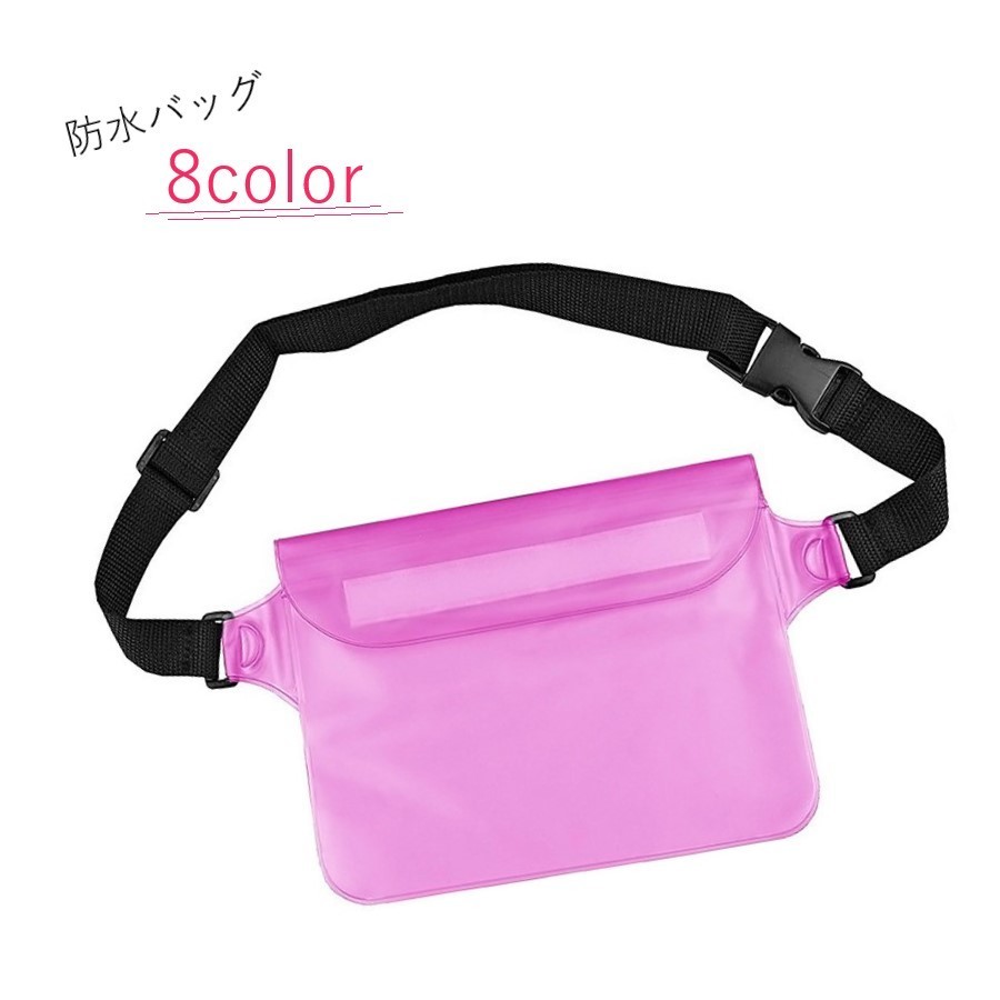 半透明で中身の見えやすい、防水性のウエストポーチ。