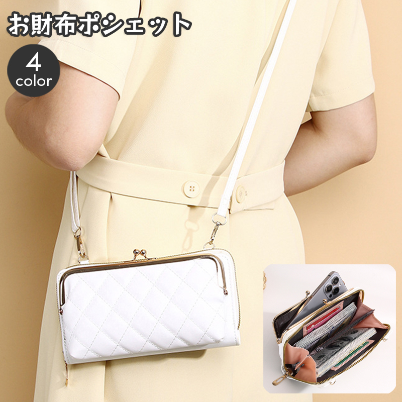 ミニショルダーバッグ お財布ポシェット スマホショルダー レディース 女性用 がま口 レザー調 キルティングデザイン おしゃれ かわいい スマホ収納