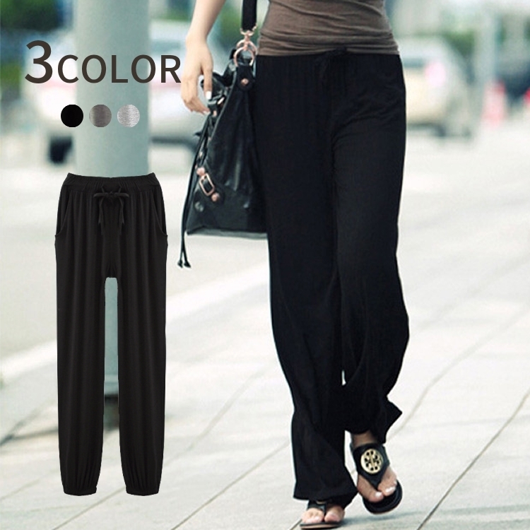 ロングパンツ カジュアルパンツ 長ズボン ボトムス レディース 女性 婦人服 フルレングス ヨガパンツ リラックスパンツ リラックスウェア 無地 単色
