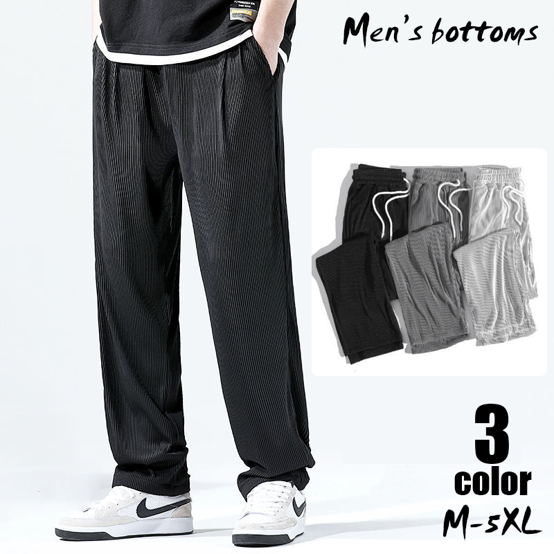 ロングパンツ イージーパンツ メンズ 男性用 ワイド ストレート ストライプ 大きいサイズ 長ズボン ウエストゴム シンプル モノトーン おしゃれ か