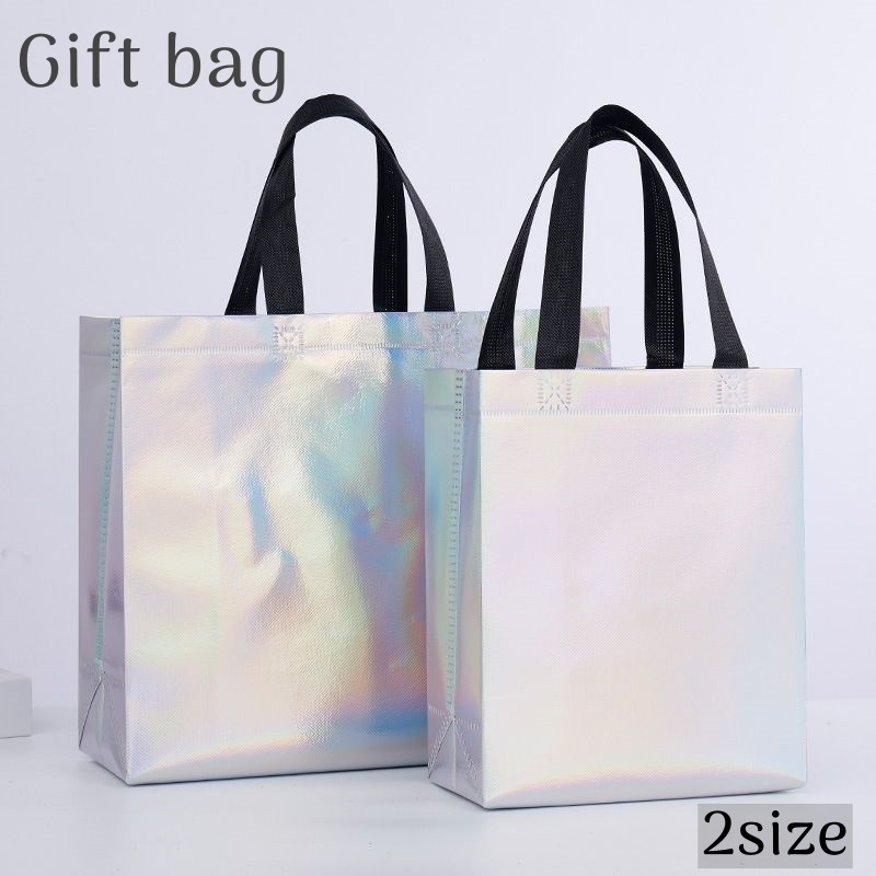 ギフトバッグ 2枚セット 手提げ 手土産袋 ショッピングバッグ レインボーカラー 虹 キラキラ プレゼント ラッピング用品 バレンタイン ホワイトデー