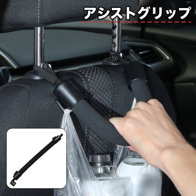 アシストグリップ 車用 後部座席 ヘッドレスト 手すり 持ち手 取っ手 ハンドル 後付け 簡単取付 乗り降り補助 お年寄り 子供