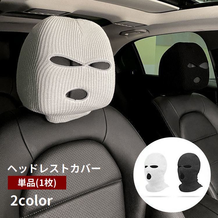 ヘッドレストカバー 単品 1枚 車載 カー用品 目出し帽風 ユニーク おもしろ 運転席 助手席 防犯対策 被せる 簡単装着 汚れ防止 傷防止 カーアク