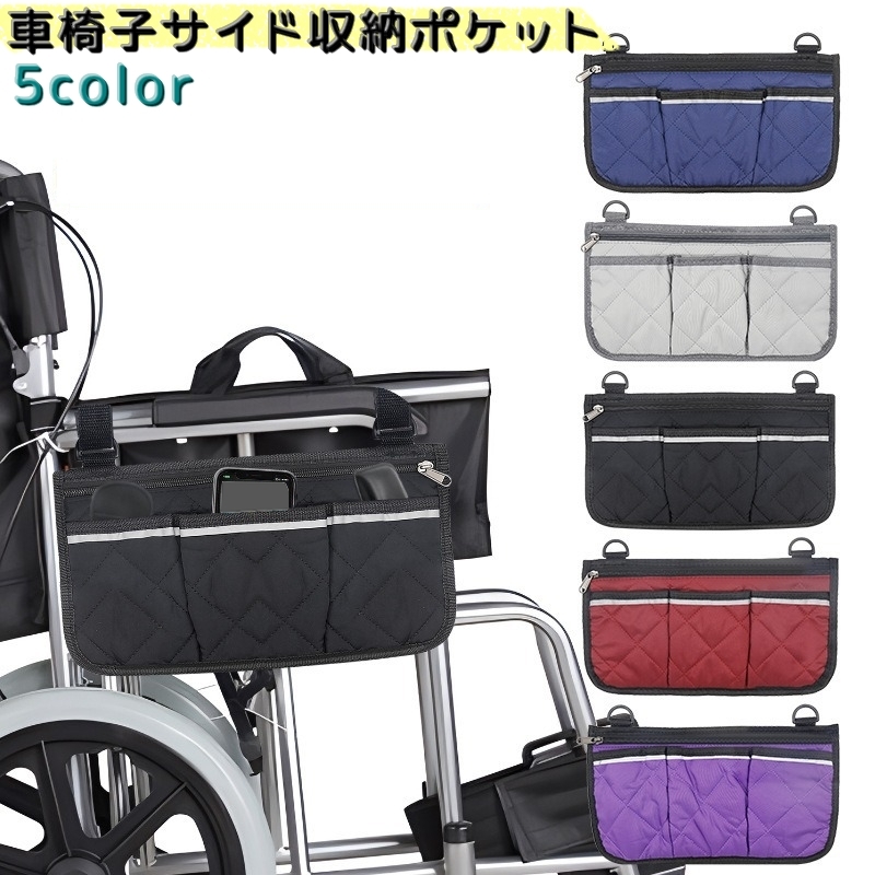 車椅子サイド収納ポケット 車いす ベビーカー ポーチ バッグ 薄型 ファスナー付き 収納ケース 小物入れ ポケット マジック テープ 財布