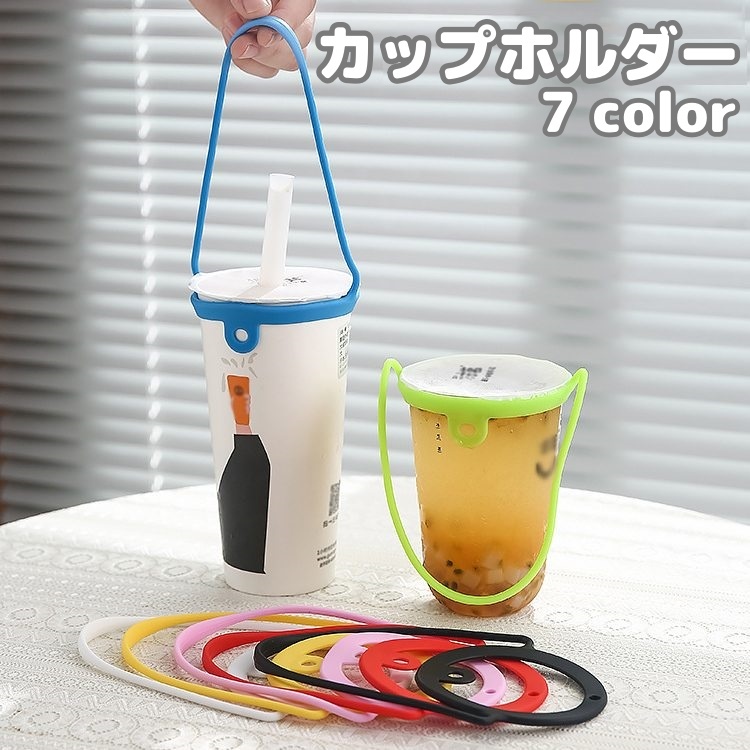 カップホルダー ドリンクホルダー コップ 手提げ ストラップ 紐 伸縮性 伸びる アウトドア 持ち運び 単色 シンプル