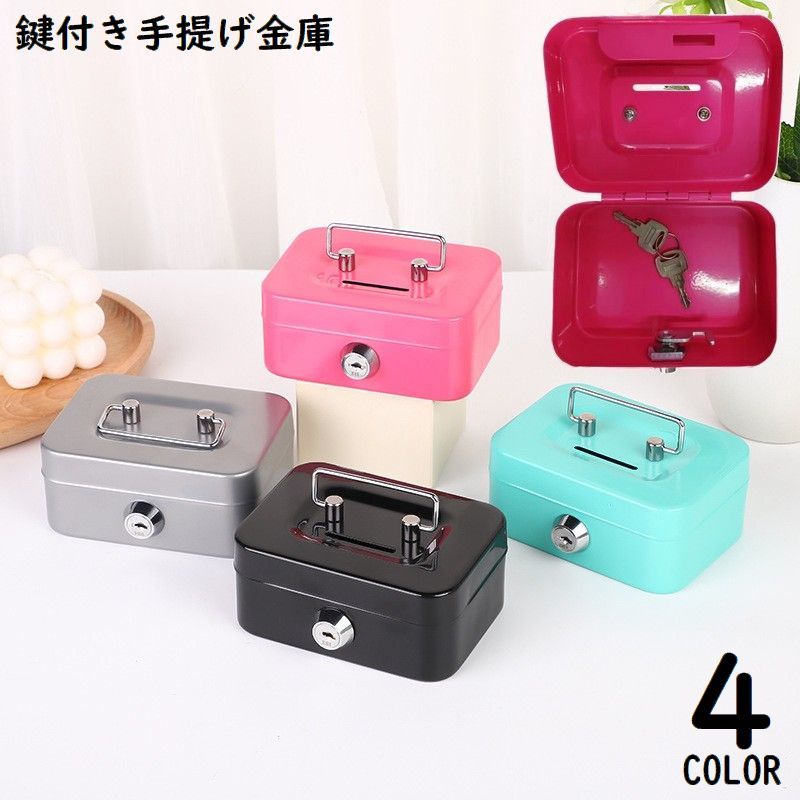 手提げ金庫 ミニ金庫 鍵付き 金属製 小型 小さい 簡易金庫 貯金箱 手提金庫 小物収納ケース キャッシュボックス 防犯 保管