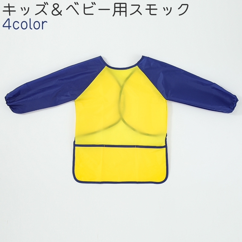 スモック キッズ ベビー 子供 子ども 女の子 男の子 長袖 面ファスナー マジック テープ 無地 青 黄色 赤 ローズ色 シンプル お絵かき 汚れ防