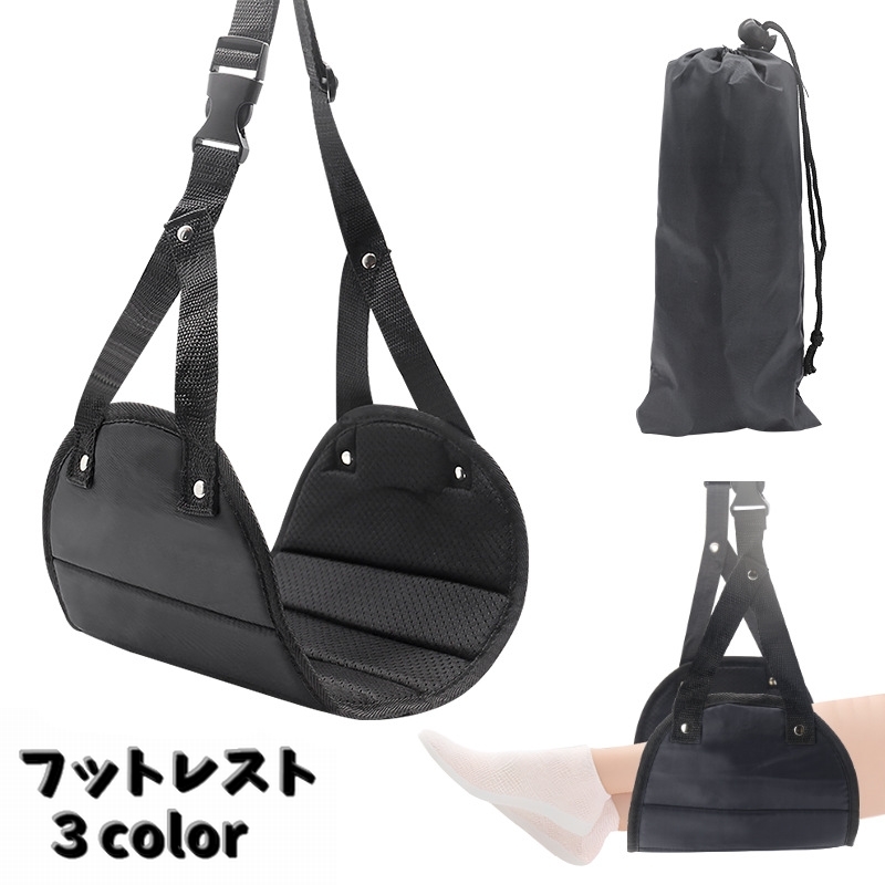 フットレスト 足置き 足掛け 足乗せ ハンモック 吊り下げ式 メッシュ シンプル 飛行機 機内 旅行 トラベル 車中泊 お出かけ 黒