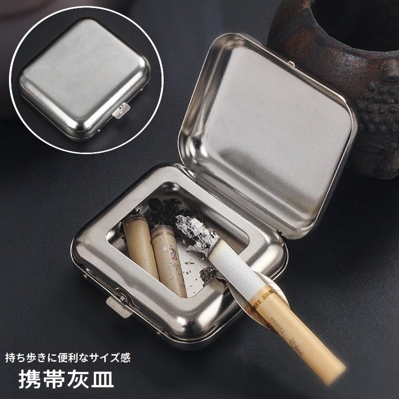 携帯灰皿 小型灰皿 喫煙具 吸い殻入れ タバコ置き アッシュトレイ 蓋付き ミニ コンパクト 持ち歩き ポータブル 火消し 四角形 スクエア型 シンプ