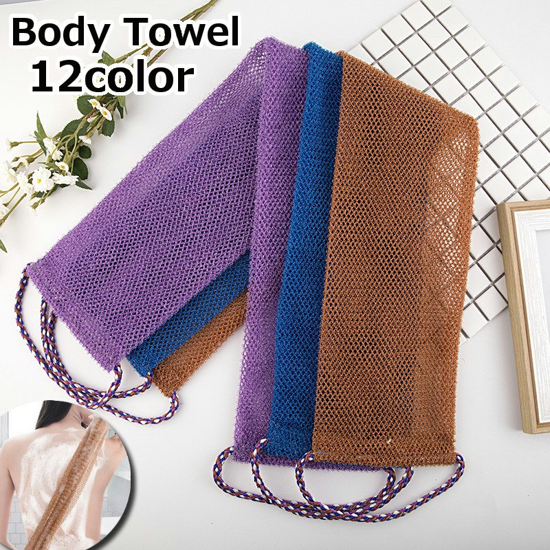 ボディタオル 背中洗い用 メッシュ バス用品 バスグッズ 持ち手付き ナイロン ボディケア 背中ケア 体洗い 浴用 ネットタオル 便利 レディース メ