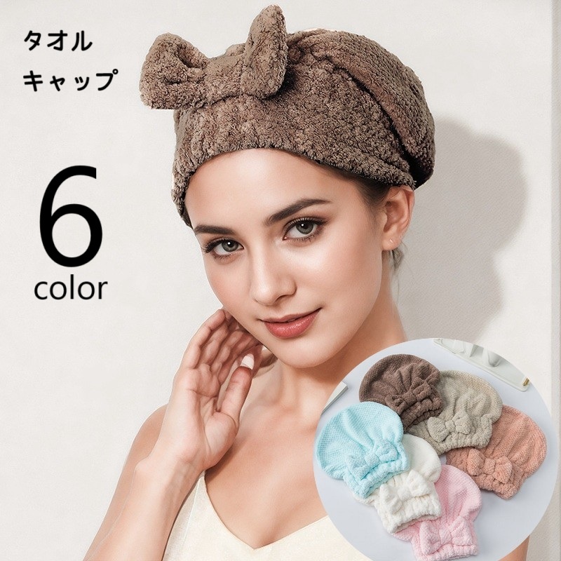タオルキャップ ヘアドライタオル ヘアタオル ドライキャップ スイムタオル レディース 女性 婦人 バス用品 ヘッドタオル 吸水力 リボン ゴム お風