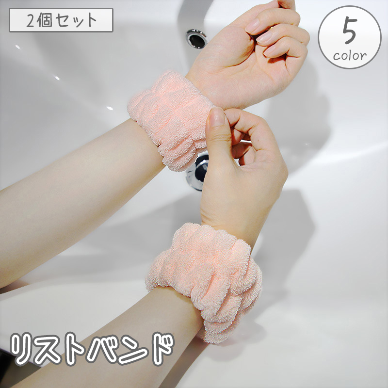 リストバンド 2個セット 両腕用 アームバンド ウォッシュバンド 洗顔 吸水 家事 袖口 袖 腕 服 濡れ防止 伸縮性 ふわふわ もこもこ かわいい