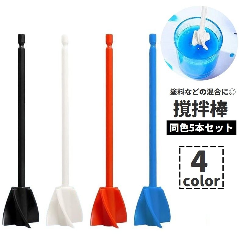 電動ドライバーに取り付けて使える撹拌棒、同色5本セット。