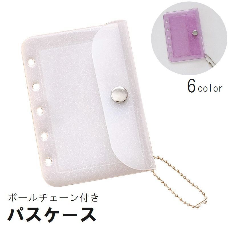 パスケース レディース メンズ キッズ カードケース マルチケース 定期入れ カード入れ 小物入れ 透明 クリア ラメ ボールチェーン付き 5穴 キラ
