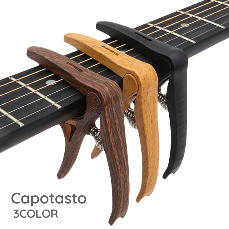 カポタスト カポ ギター アコースティック アコギ エレキ クラシックギター 簡単装着 バネ式 ワンタッチ式 木目調 ギターアクセサリー 楽器アクセサ