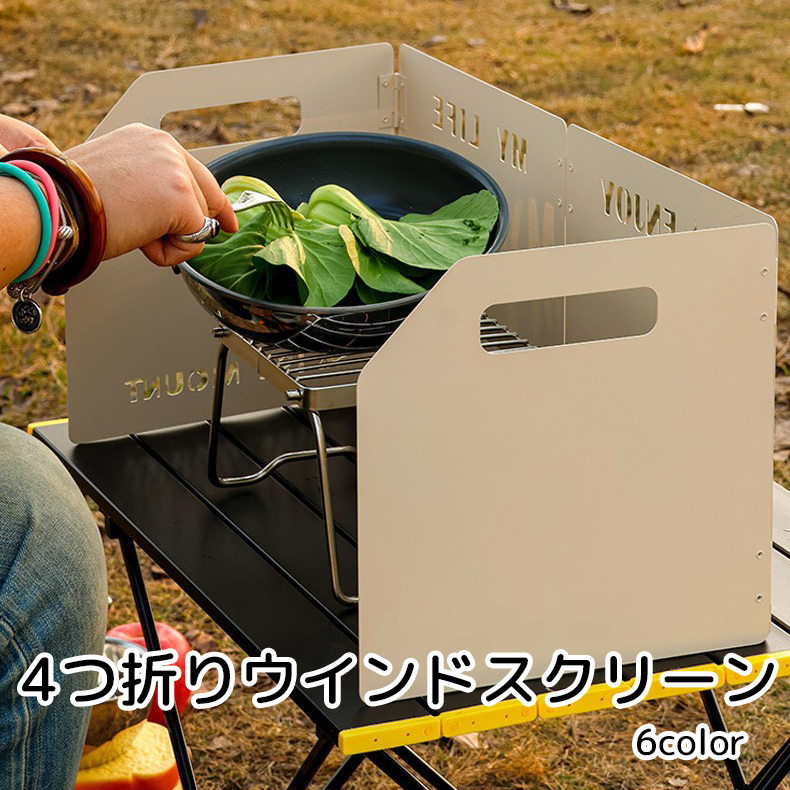 ウインドスクリーン 風防板 アウトドア用品 四つ折り レンジガード 油はねガード 折りたたみ 4面 4枚パネル コンロガード レンジカバー コンロ用カ