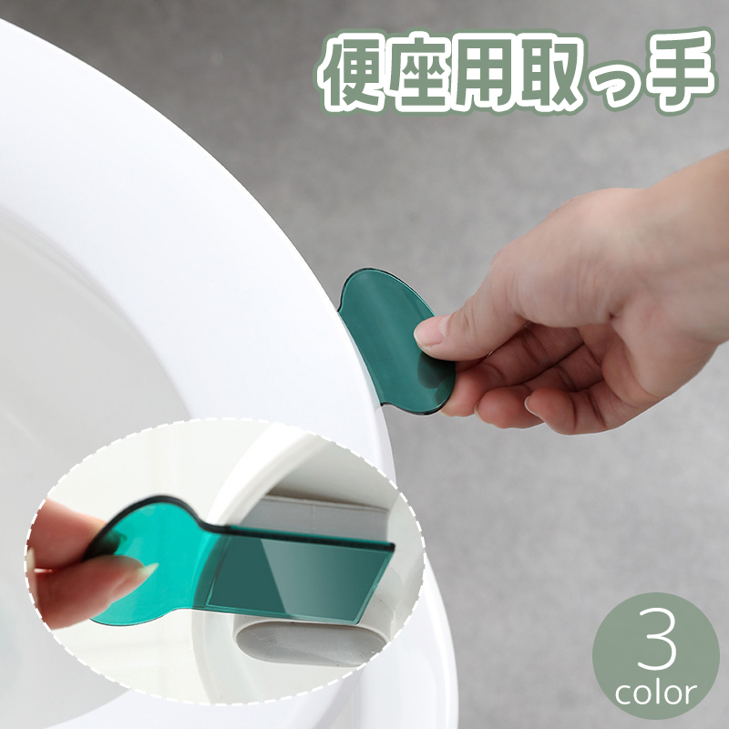 便座用取っ手 持ち手 ハンドル リフター 便座上げ 上げ下げ 触れない 粘着式 テープ 貼り付け 透明 クリア 透け感 簡単 衛生的 清潔感 シンプル