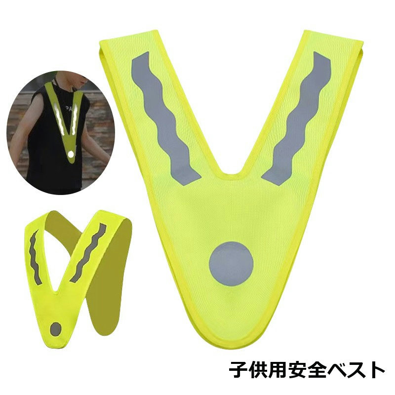 安全ベスト 反射ベスト V字型 タスキ キッズ 子供用 こども 子ども 蛍光色 反射材 光る 外遊び 安全対策 事故防止 スポーツ サッカー ジョギン