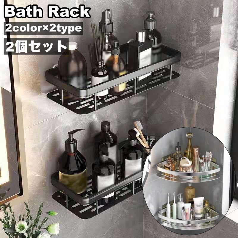 バスラック 2個セット コーナーラック シェルフ 浴室収納棚 排水 貼り付け 工具 工事 不要 洗面所 ユニットバス バスルーム 水回り 整理整頓 便