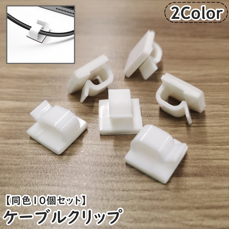 ケーブルクリップ ケーブルホルダー ケーブル固定 同色10個セット ケーブルクランプ コードフック 配線整理 粘着テープ 充電コード イヤホン ヘッド