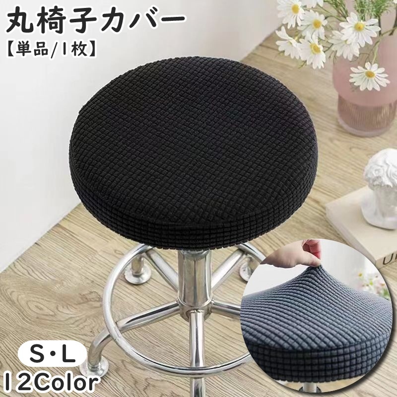 チェアカバー 丸椅子カバー 単品 1枚 カバーのみ インテリア 回転椅子カバー 伸縮性 座面 丸型 ポップコーン生地 デコボコ 凸凹 装着簡単 フィッ