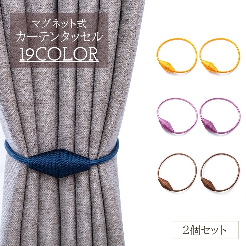 カーテンタッセル 2個セット マグネット 磁石 カラバリ豊富 留め具 カーテン留め ワンタッチ おしゃれ かわいい 房飾り 装飾 カーテンアクセサリー