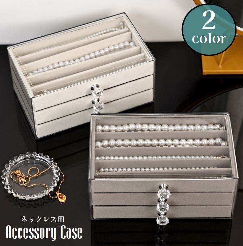アクセサリーケース アクセサリーボックス ネックレス用 引き出し 3段 仕切り付き クリア 透明 ジュエリーボックス ネックレス収納 ネックレス入れ