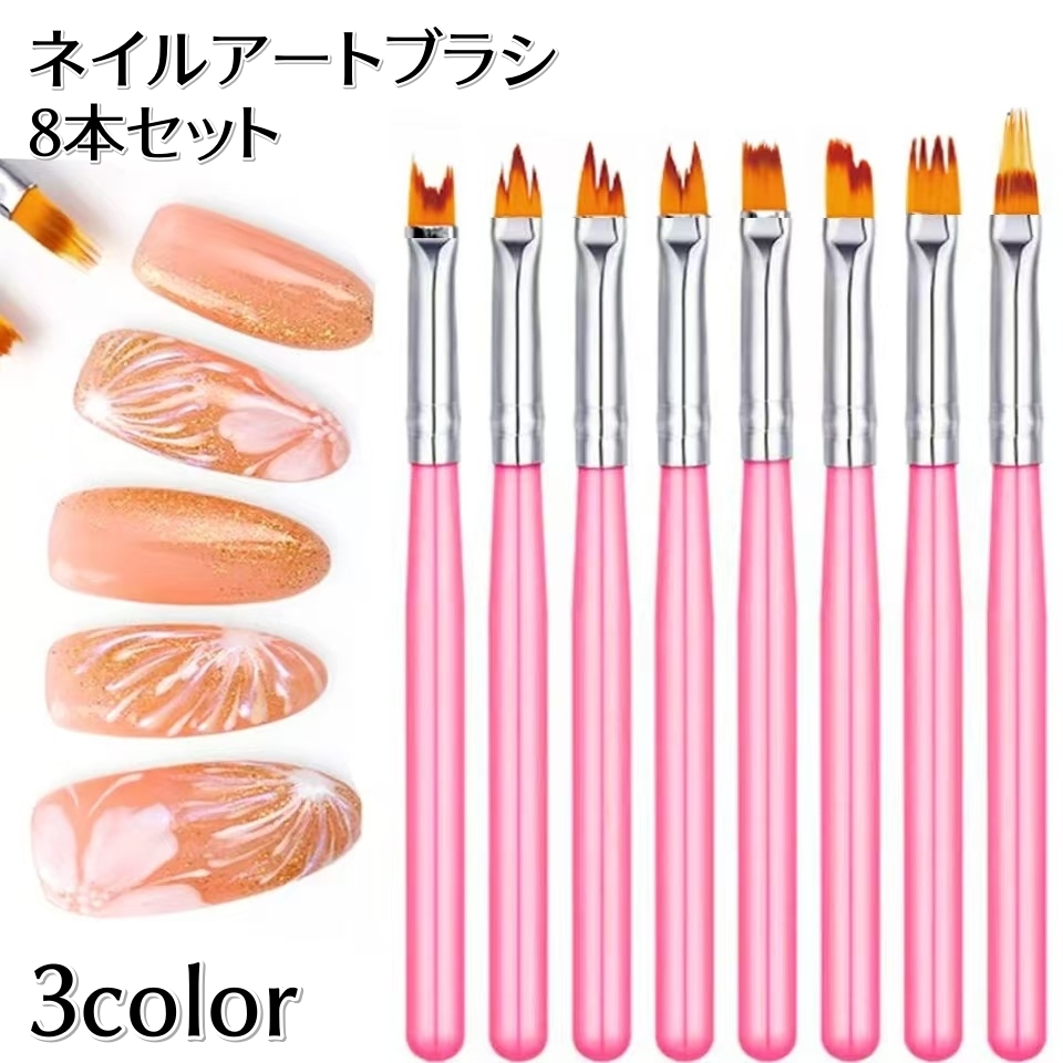 ネイルアートブラシ 8本セット ジェルネイル 3Dネイル セルフネイル おうちネイル 持ちやすい シンプル マニキュア ネイル用品 ネイルケアグッズ