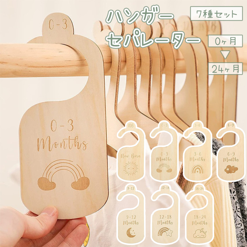 ハンガーセパレーター 7種セット サイズ仕切り 服の仕切り ベビー 赤ちゃん 子供用 木製 ディバイダー ワードローブ 洋服 衣服 お店 洋服店 かわ