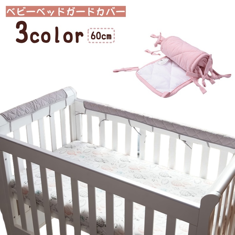 ベビーベッドガードカバー ベビー用品 赤ちゃん 安全パット 60cm ベッドフェンス ベッドバンパー 取り付け簡単 紐付き シンプル