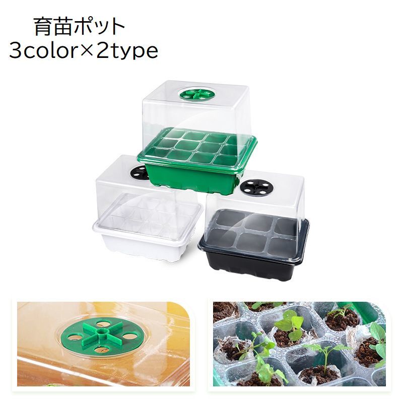 育苗ポット 育苗資材 ガーデニング用品 6穴 12穴 蓋付き 通気口 排水穴 育苗トレー 苗箱 育成 栽培 無地 シンプル