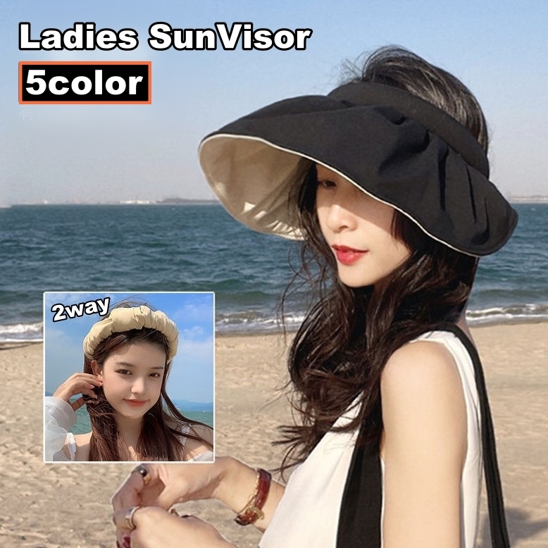 サンバイザー レディース 女性 帽子 ぼうし つば広ハット 紫外線対策 UV対策 日除け 折りたたみ カチューシャ 2way コンパクト 日よけ帽 シ