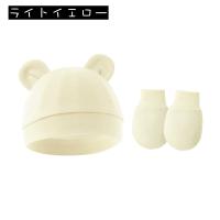 ベビー帽子 ミトン 2点セット ニット帽 手袋 子供用 ベビー 赤ちゃん 新生児 男の子 女の子 耳付き クマ みみ ワッチキャップ 無地 シンプル